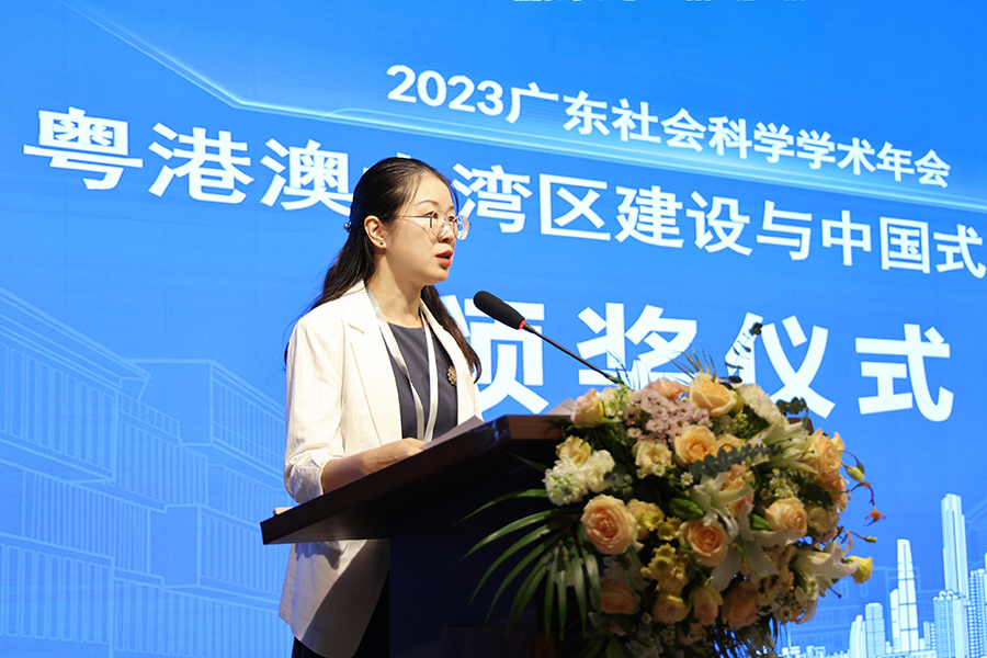 广东省社科联二级巡视员何方俊出席开幕式并致辞。他指出,建设粤港澳大湾区,是习近平总书记亲自谋划、亲自部署、亲自推动的重大国家战略。他期待与会专家学者更加紧密地团结在以习近平同志为核心的党中央周围,坚持以习近平新时代中国特色社会主义思想为指导,认真学习贯彻习近平总书记视察广东重要讲话、重要指示精神,奋力在推进中国式现代化建设中走在前列,为强国建设、民族复兴作出新的更大贡献。
