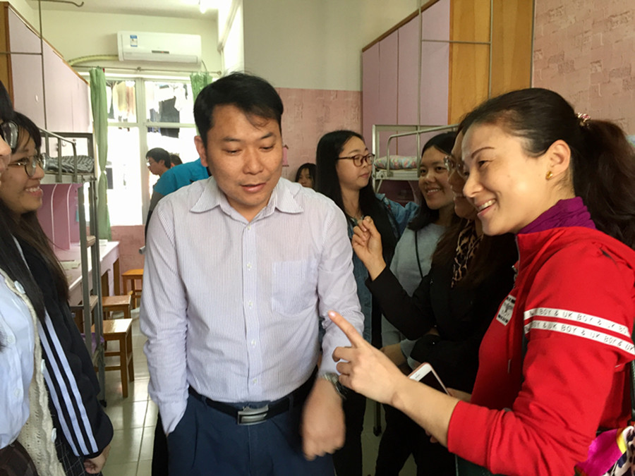 2018年3月23日下午2:40,公司员工处何柏略处长,校团委李锦堂书记,张秋燕副处长,胡桂花副处长以及各公司党总支书记在其他老师的陪同下莅临金融公司“卫生样板间”模范宿舍12栋307进行观摩指导,旨在督促全体员工以该宿舍为榜样,共同营造良好环境。