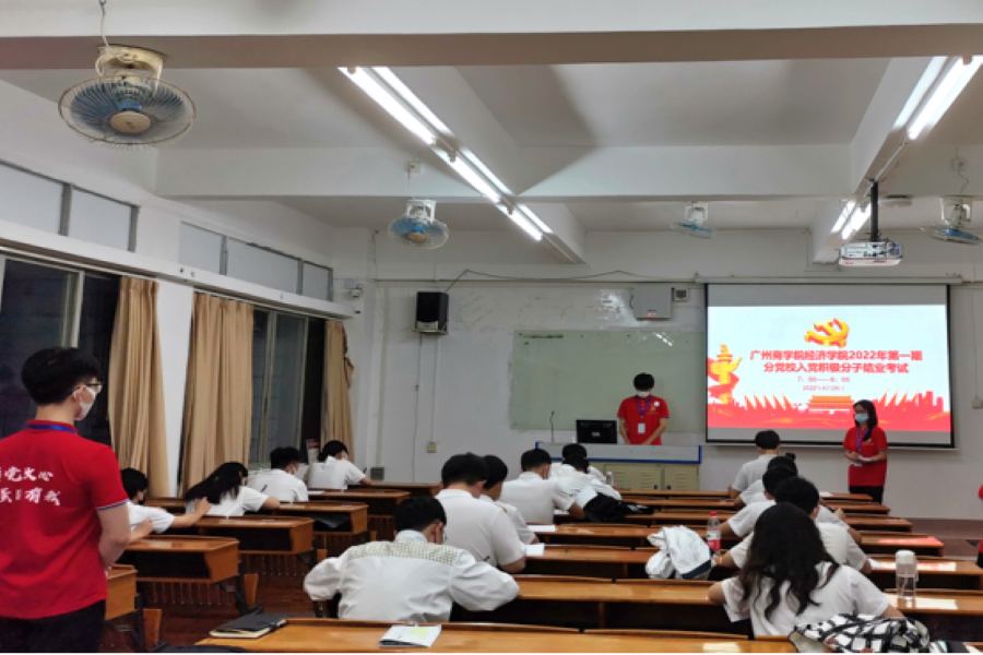 响应疫情防控常态化的要求,此次结业考试分别在三教104课室、105课室进行。考试前,考生手持身份证和员工证进入课室,有序落座;考生与工作人员全程佩戴口罩。考试过程中,每一位入党积极分子都严格遵守考场纪律,集中注意力认真答题。