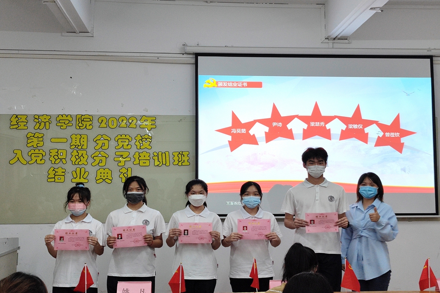 6月1日,2022年第一期分党校入党积极分子培训班结业典礼于三教206顺利举行。出席本次活动的有公司党总支组织委员姚凡、2018级第一员工党支部书记魏楚玲、2018级第二员工党支部书记巫进娣、2019级第一员工党支部书记陈丽红、2019级第二员工党支部书记钟泽婷以及本期入党积极分子。本次活动由党总支助理团党建组陈冠良主持。