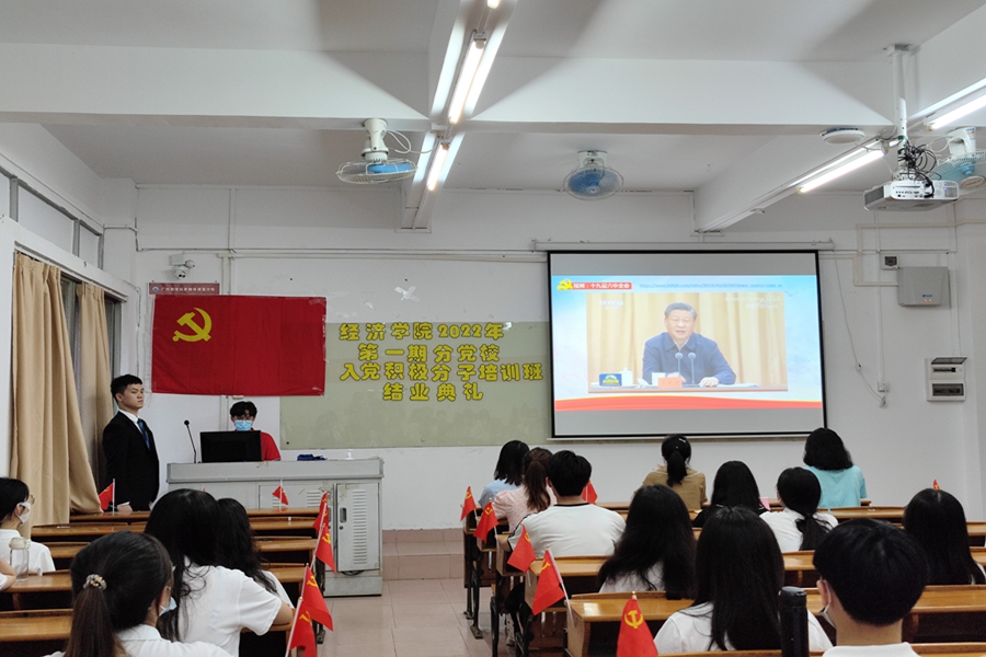 结业典礼在嘹亮的国歌中拉开帷幕。全体入党积极分子观看党的十九届六中全会相关学习视频,共同学习党的十九届六中全会精神,将党的十九届六中全会精神内化于心,外化于行。