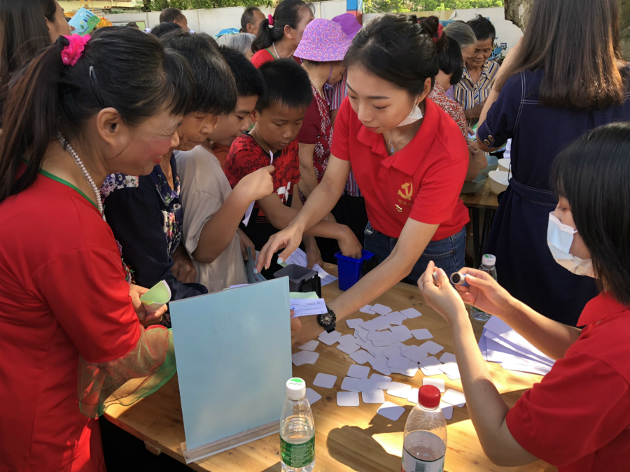 活动上,员工党员分别负责文明餐桌——“公筷公勺,光盘行动”、文明投放——“环保小护士”、文明出行——“交通标识我都懂”以及“禁毒知识知多点”的游戏摊位,通过指引居民进行摊位游戏,让人民群众了解和学习文明常识,在日常生活中践行文明行为,营造“讲文明,有礼貌,树新风”的浓厚社区氛围,建设文明城市,构建文明和谐社会。最后,全体党员及其他参与人员在“厉行节约,反对浪费”的承诺墙上进行签名。
