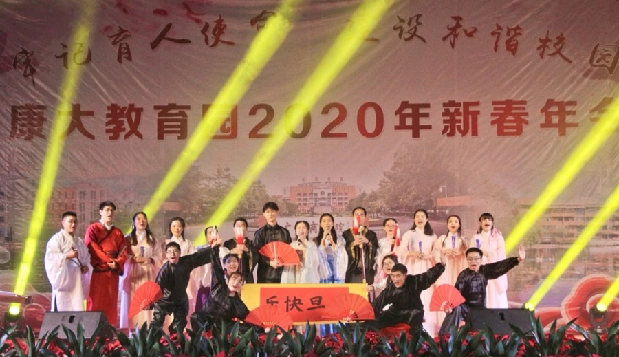 2019年12月30日晚,康大教育园联合工会于第四教学楼二楼平台举办了“牢记育人使命,建设和谐校园”为主题的2020年教职工新春年会,为响应董事会建设“美丽花园、和谐校园、幸福家园”的号召,营造文明和谐的校园文化氛围,以崭新的风貌迈向新年,我们bevictor伟德特排练《广商英雄汇》舞台剧庆祝广商新春年会。