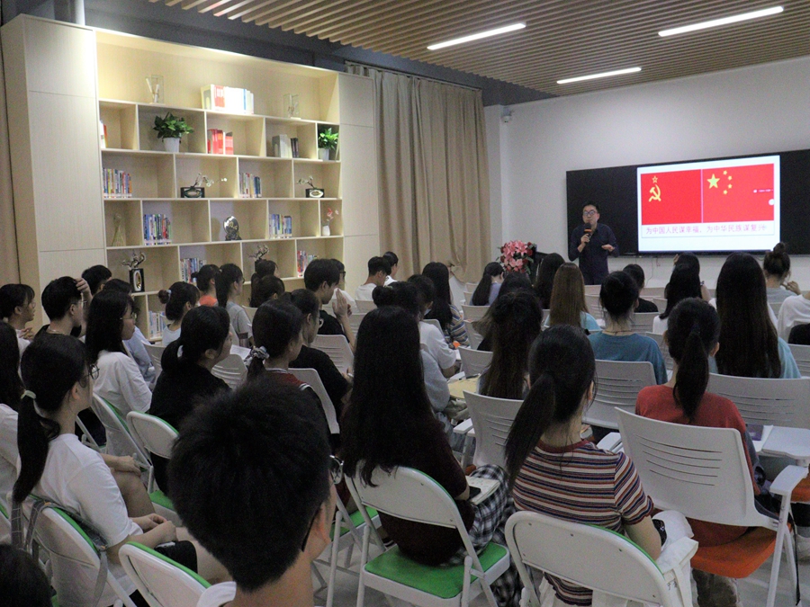 主讲人董学林老师以伟人毛泽东的家国情怀为主题,为我们讲述了毛泽东领导中国人民彻底改变个人命运和国家面貌的实际行动和伟大壮举。内容主要分为三个部分,第一部分讲述毛泽东志存高远的爱国情怀;第二部分讲述毛泽东舍家卫国的奉献情怀;第三部分讲述新时代党员的新情怀。在主讲过程中,董学林老师以具体例子和视频分享让同学们进一步了解毛泽东伟人事迹,同学们仔细聆听,认真记录,营造出学党史的浓厚氛围。