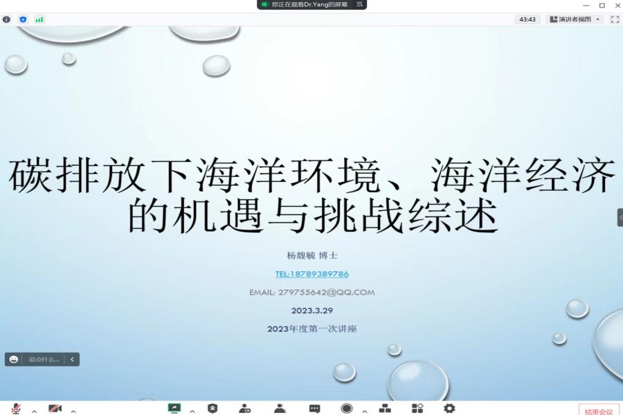 杨馥毓博士分享的主题为碳排放下海洋环境、海洋经济的机遇与挑战综述。杨博士提出碳排放是全人类都在面临的问题,也是与人们的社会活动、生产生活紧密关联的排放活动,而碳排放分为几个等级,等级越高,则碳排放活动越剧烈,对人们的生活、健康等福祉的影响就会越为复杂,也会加剧环境治理成本、治理难度等方面的影响。