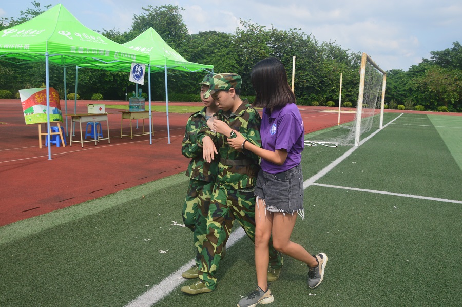 为了让18级新生在军训期间享受到更好的照顾,让他们能够从新的环境中感受到家的温暖,团学干部轮流值班,以帮助员工、老师为己任,尽最大的可能给予帮助。在新生军训期间,每天都有值班的干部早早驻扎在大本营,确保新生和教官军训用水的供给,每天都会有专人把桶装水运到广商排球场;团学干部还会准备好葡萄糖和盐,及时地为新生提供基本的能量和盐分补给;除此之外,还会准备好医药箱,随时准备好为同学们服务,同时对于生病受伤的新生,团学干部还会现场给予照顾,让新生感受到金融公司对于他们的关爱。他们默默无闻,他们无私奉献,他们就是——紫衣人。