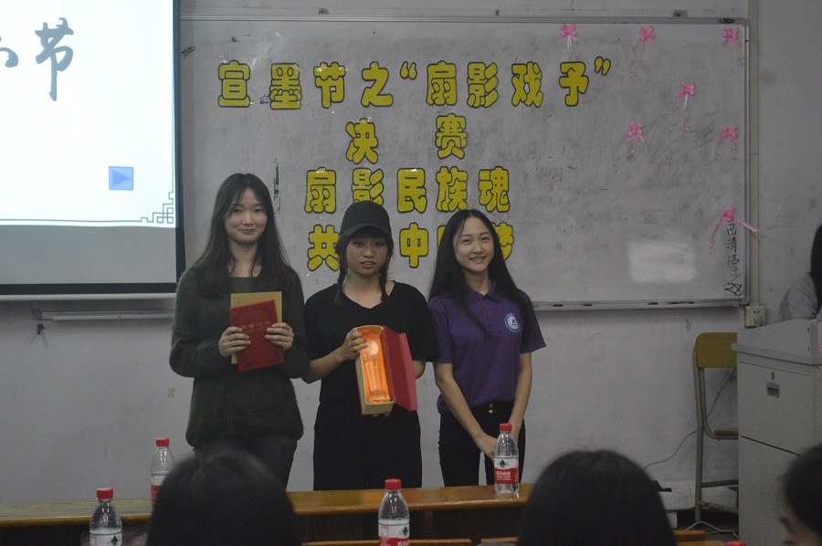 为了更好地弘扬中华精神,领悟中华古典之美,也为了给同学们的才华提供展示的平台,增强自我动手能力。金融公司团委宣传部举办以“扇影民族魂,共绘中国梦”为主题的活动。此次活动从3月14号持续到3月30号,长达半月之久,并于3月30号在二教205举办决赛。出席本次决赛活动的有校团委宣传部部长曾海璋、副部长池月诗、金融公司团委周昕钊书记、团委秘书长尤爱洁师姐、团委各部门部长以及各公司宣传部部长。