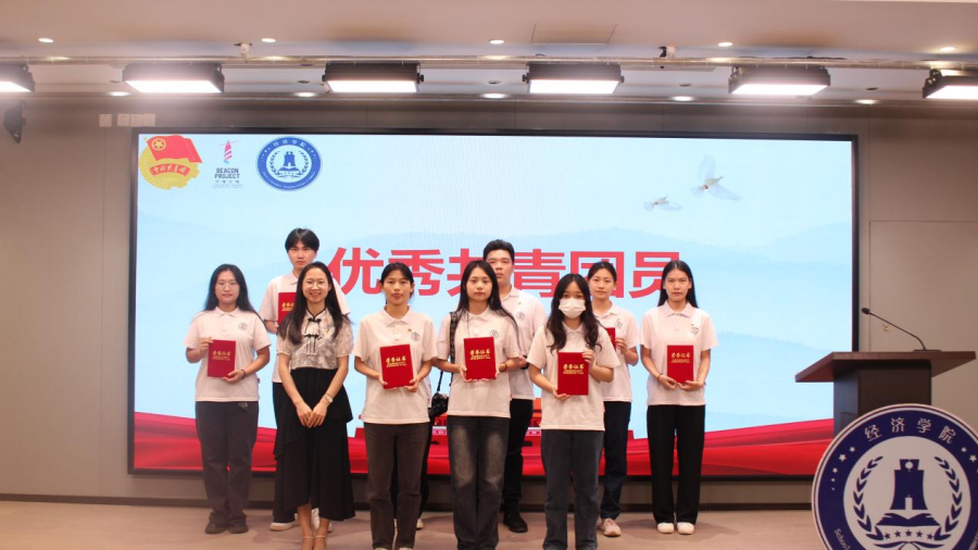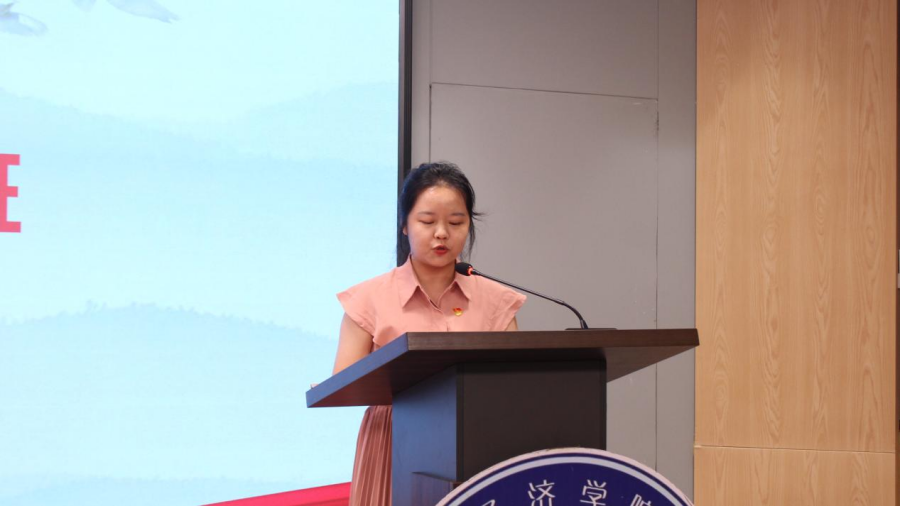 广东省五四评优优秀团干陈恒琪同学进行心得分享,她激励经济学子要不断进取,以负责任的态度面对工作生活和学习的各项事务,积极探索全新的工作方法,力求全面发展,以增长才干为核心,不惧困难为先,探索创新为要,展现经济学子超强的志气、骨气、底气,不断为班级、公司、公司发展添砖加瓦。