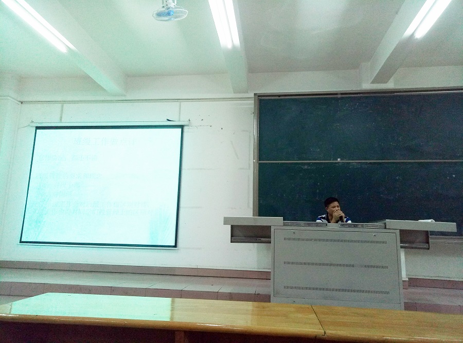 会上,辅导员叶剑敏老师做了总结讲话。首先是对本学期开展的工作进行答疑,比如让同学们了解考勤的情况,各个班存在不同程度的问题,纪律性有待提高。接着是宣扬考风考纪思想,临近期末,叶剑敏老师对考试纪律和公司相应奖惩制度又作了强调,同学们应该做到问心无愧,以真实水平迎接考试,自觉杜绝作弊行为。同时,鼓励同学们把热情、智慧、干劲放到学习中。