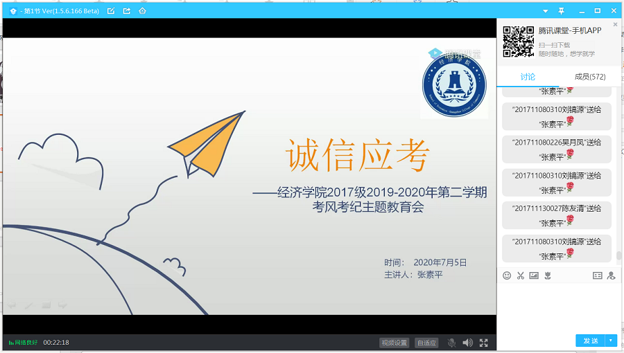 通过“腾讯课堂”召开了2019-2020学年第二学期考风考纪主题教育会,
