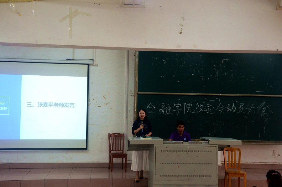 为积极备战第十八届校运会,公司于11月5日中午在一教111召开了金融公司校运会动员大会。出席大会的有金融公司党总支书记张雪梅、员工会指导老师张素平、员工会体育部及校运会全体运动员。