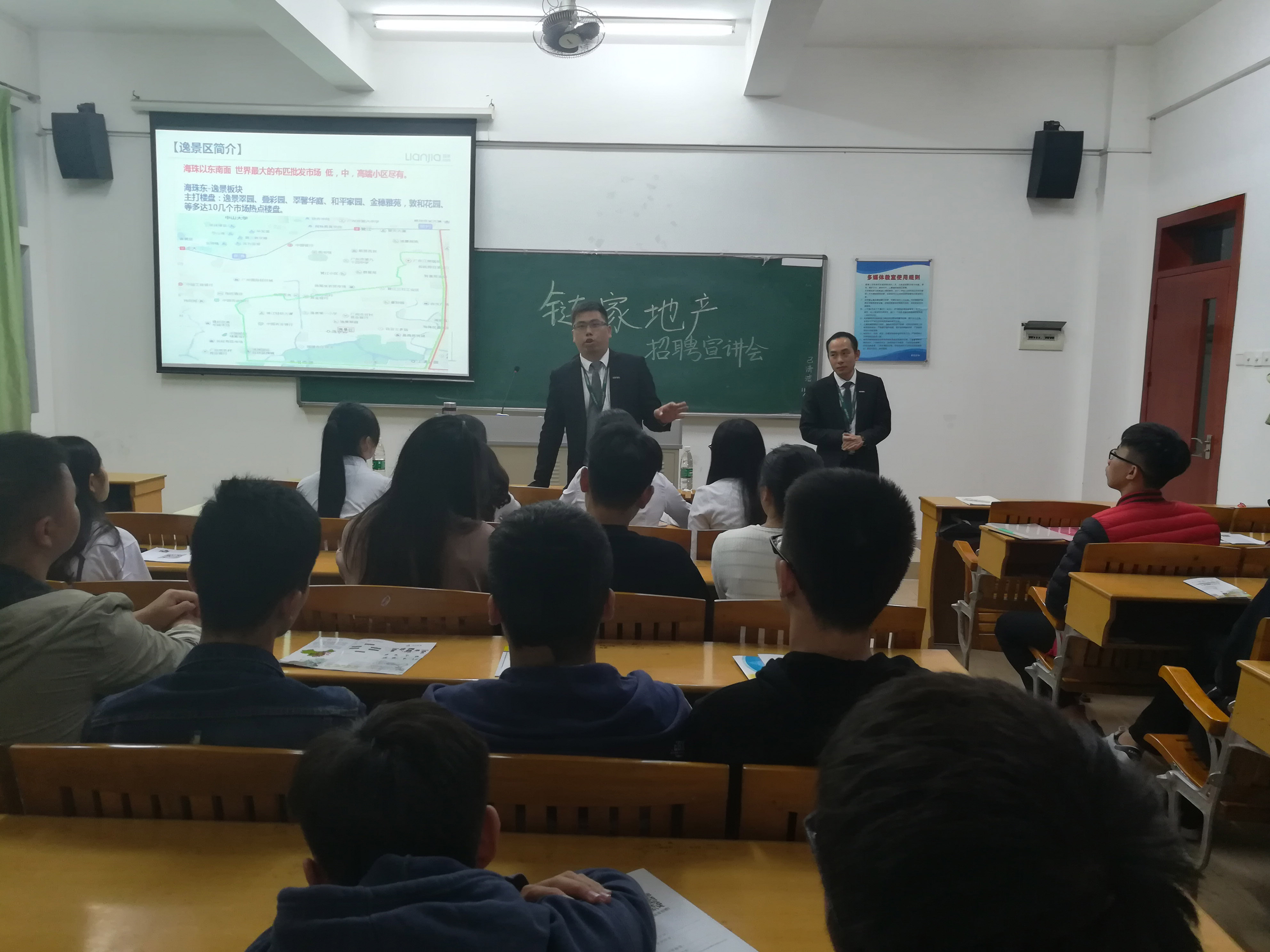 本次宣讲会分为企业介绍和答疑两个环节进行。首先每个企业主讲人以ppt的形式向毕业生们介绍该企业的规模、成就、现状和业务等,接着他们进一步讲解了目前市场的现状、员工就业的形式,并从公司内部的娱乐休闲、工作前景等向毕业生多方面展示了在该公司就业的优势。最后,每间企业的主讲人都提出了对用人的要求。