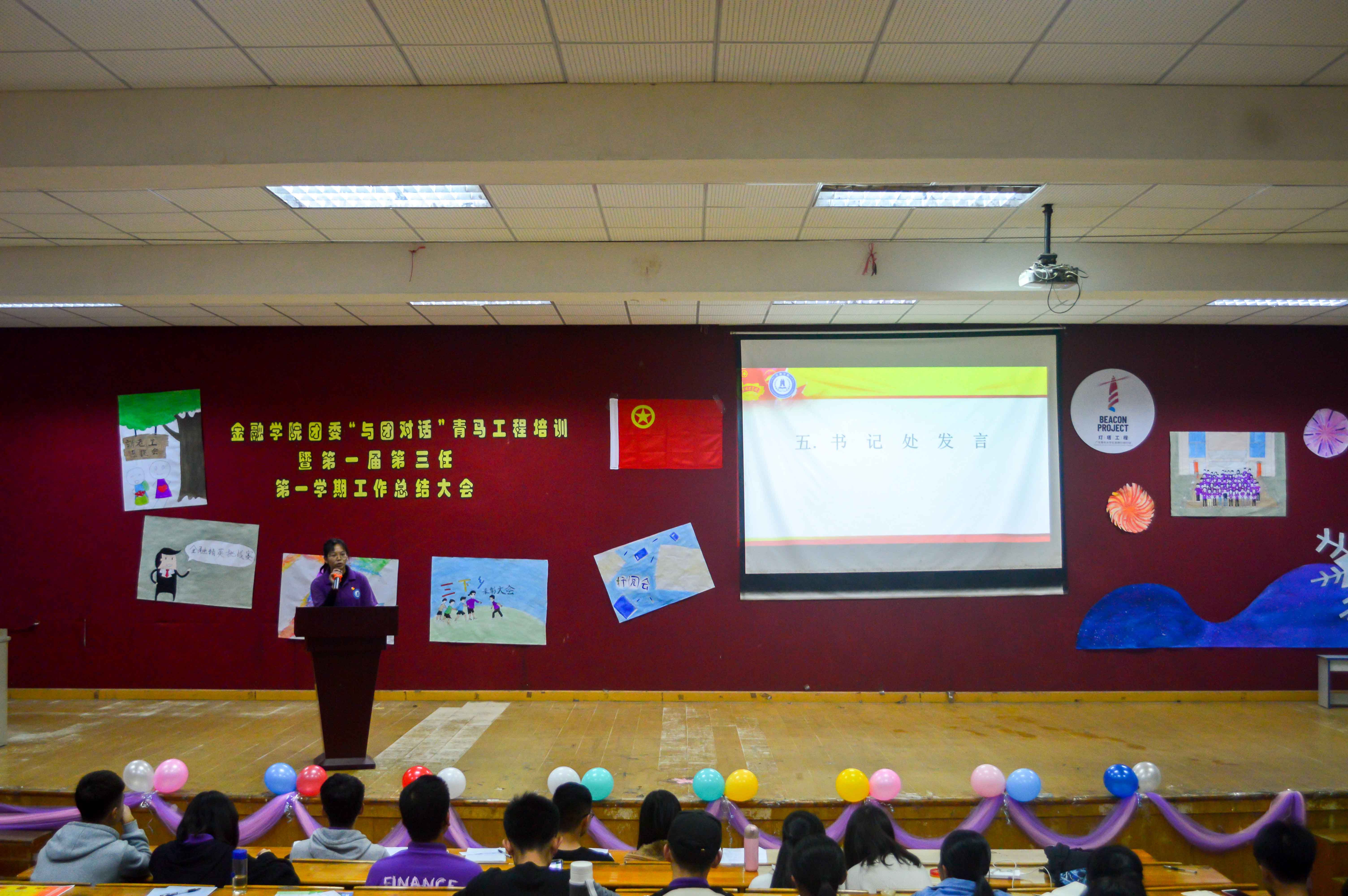 白驹过隙,时光荏苒,2018学年第一学期也快要接近尾声了。为总结金融公司团委在本学期以来的工作,分享优秀成绩和宝贵经验,金融公司团委于2018年12月19日晚在第一教学楼206室举行了金融公司团委第一届第三任第一学期工作总结大会。出席本次会议的有金融公司团委书记曾梓恒,团委副书记何润惠,秘书长郑少丹,组织部部长黄寿明以及全体团委干部。
