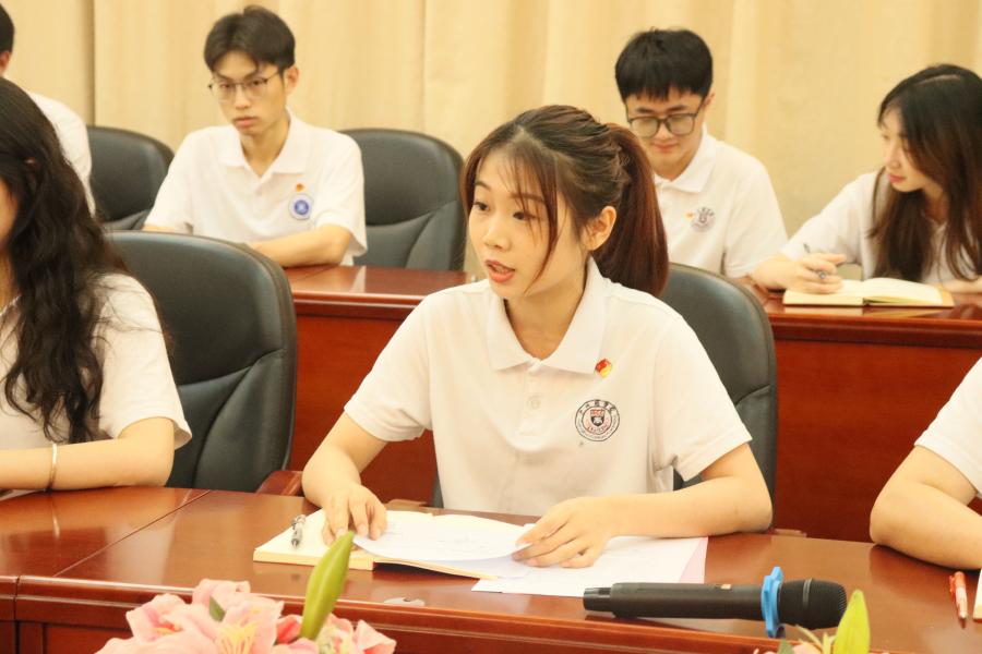 20级员工代表陈恒琪结合党的二十大精神的理论学习发表自己的感悟,作为一名中共预备党员,衷心感谢党组织、公司的关怀与培养,使其不断始终坚定理想信念,保持为同学服务的初心。并且作为一名员工工作人员要有奉献精神,要牢记习近平总书记的嘱托,在成长过程中服务同学和社会,让青春在为祖国、为社会、为同学的奉献中焕发绚丽的光彩。