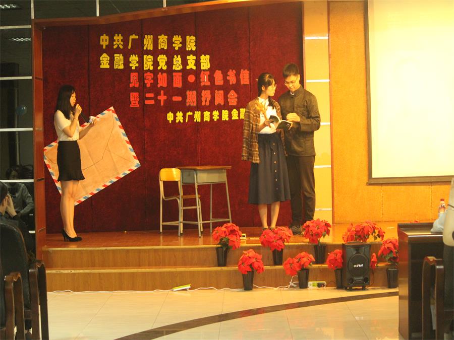 为了弘扬革命时期战士们奋不顾身、大无畏的精神,让同学们更好的了解历史使命,金融公司于2018年5月15日晚在康大歌舞厅举行了见字如面•红色书信第二十一期抒阅会。出席此次活动的嘉宾有金融公司副经理陈德余副教授、金融公司党总支书记张雪梅、15级党支部书记吴茜茜、16级党支部书记叶剑敏以及17级辅导员梁春芳。