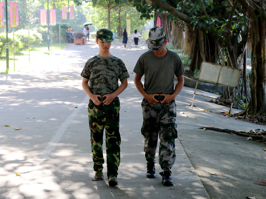 教官在教导同学们齐步走