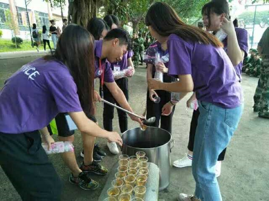 在新生军训之前,团学干部就会把桶装水运到广商排球场,保证新生军训的水资源供给,把甘甜的矿泉水送到每一位劳累的新生和教官们身边;还会提供葡萄糖和盐,给新生提供基本能量和盐分补给;除此之外,对于受伤生病的新生,团学干部还会在现场照顾他们,给他们提供力所能及的帮助与支持,让他们感受到金融公司的温暖与美好。