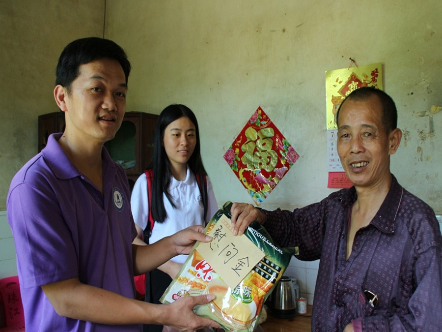 接下来,我们去探访了两位年迈的老兵,老兵给同行志愿者们上了一节生动的党课,为我们讲解他们当兵打战的光荣事迹,并给我们展示了他们当年当兵的照片,让我们同行几人获益匪浅。在最后,由陈敬宗老师为他们送上慰问金及慰问物资,并合影留念。