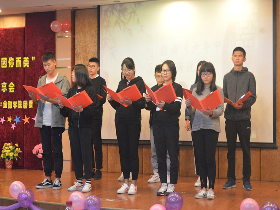 为了进一步增强校园中读书氛围,给金融学子提供阅读学习与交流的平台,拓宽员工的知识面,金融公司特别举行“书香广商---抒阅会”系列活动。在经过为期一个多月的分享会后,金融公司于2017年12月12日在康大歌舞厅举办金融公司抒阅会“书香金融,阅读因你而美”读书分享大赛决赛暨第十七期读书分享会。出席本次活动的有金融公司党总支书记张雪梅,团委书记叶剑敏,15级辅导员吴茜茜老师,17级辅导员陈敬宗及成奕莹老师。