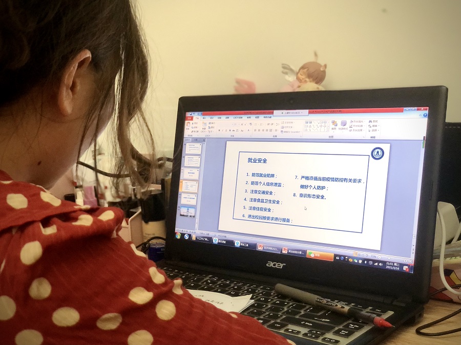 首先开展的是2021届春招动员会,共有六部分。第一部分,张素平辅导员介绍了目前就业形势与春招工作,她提到毕业生要有明确的求职规划,现有的实习经历将成为日后求职成功的关键因素。第二部分,张素平辅导员详细讲解了电子三方就业协议签订指引,引举容易出现的问题和注意事项。第三部分是就业创业政策宣讲与答疑,张素平辅导员为毕业生提供了了解就业创业政策的渠道,以及如何获取招聘信息。