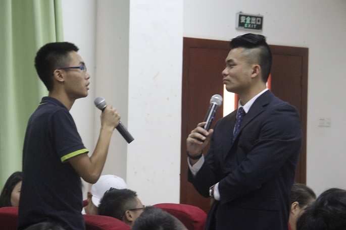 本次讲座的主讲人是易杰先生,他目前担任广州骏明投资资询有限公司市场部经理,曾任华中地区多家投资公司国际期货技术顾问。他的开场不同寻常,一上台就提出与同学们面对面建微信群,群里的热烈互动一下子带起了全场的气氛。正式讲座时,以循序渐进的方式,他先介绍了相关金融历史,再分析了中国金融现象,并积极与同学们互动,倡导同学们分享自己的经历,结合自己的见解与想法,让同学们对金融实况有了更深入内心的了解。