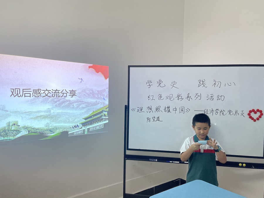上午,志愿者们对小朋友进行了课业辅导。志愿者们充分发挥自己的优势,合理分工合作,提供个性化的课业辅导,解决学习上的疑惑,提升学习乐趣,满足同学们的需要,为其增能,让小朋友们融入到自我提升的学习境界中,同时志愿者们弘扬志愿服务精神,践行志愿服务。下午开展了红色主题观影活动,志愿者带领小朋友们一起观看“理想照耀中国”电视剧。百年党史,百年经典;百年岁月,百年奋斗。一幕幕电影,一句句台词,一个个人物形象拼凑出了中国共产党的诞生与发展。在观影后,小朋友们进行分享了观影心得。“好好学习,长大后,我要为祖国做贡献”、“要向陈望道一样认真学习”、“团结就是胜利……”。通过共同观看红色影片,激发了小朋友们的爱国情怀、精神动力和内驱活力,并引导小朋友们学党史、立壮志,传承红色基因,自立、自强、自爱,努力进取,以优异成绩回报社会。最后进行党史知识竞答环节,小朋友们踊跃参与课堂活动,争先恐后地举手回答,丰富了知识,也让他们充分感受了百年党史的魅力。小朋友们在游戏中加深了彼此之间的友谊,也通过游戏进行了背诵古诗、唱歌等个人展示,游戏结束后,姚凡老师对本次义教活动进行了总结并强调了课堂纪律,希望小朋友们能够增强纪律意识,好好学习,努力成长为祖国的合格建设者和可靠接班人。