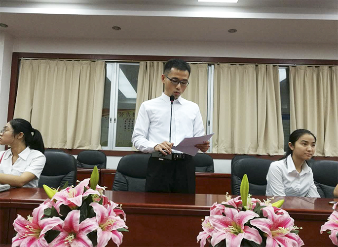 金融公司14级员工党支部于2017年6月6日晚上9:00在第一行政楼D208进行接收预备党员支部大会,会议主要讨论了党支部六名入党发展对象转为中共预备党员的问题。本次会议由党支部支委温迪媚主持,党支部书记范英琦出席了本次会议。