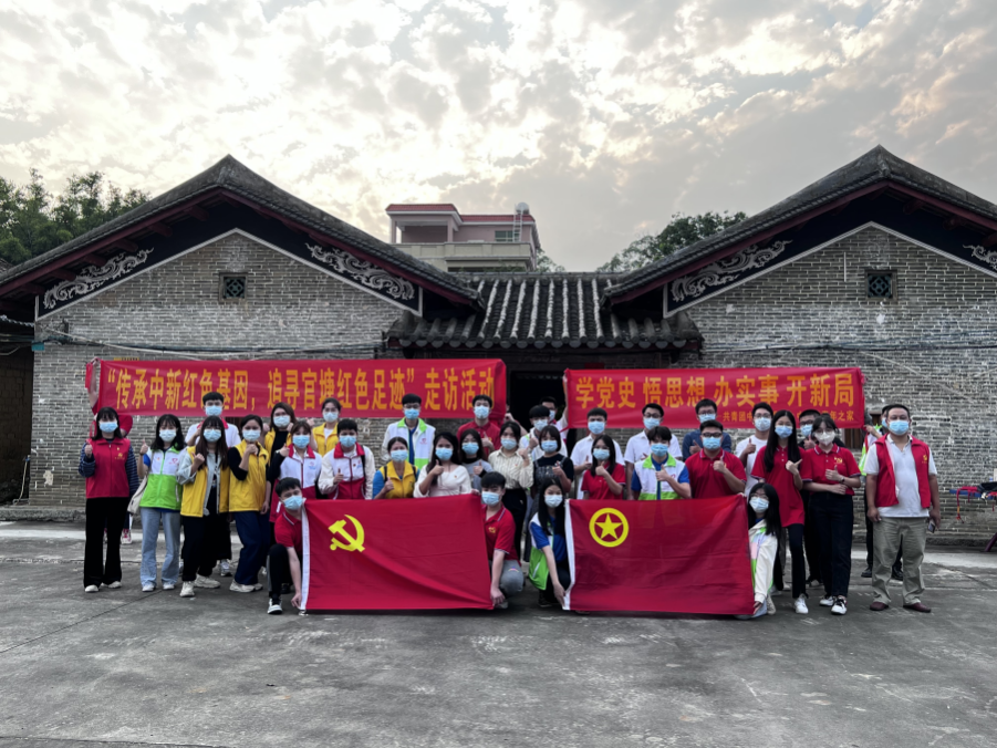 官塘村党群服务中心通过播放官塘村的相关影片使走访人员更深入了解该村的红色底蕴背景。在走访的第一站,他们来到了官塘村继枚故居,官塘村党群服务中心社工为党员同志们生动介绍了继枚烈士的事迹,为纪念郭继枚烈士,政府在烈士故乡的增城区荔城街命名了一条继枚路,在原福和镇也命名一条继枚路,并在其家乡修建了继枚小学、继枚故居,以作纪念。第二站便是在继枚故居旁的郭氏祠堂,在社工的讲解下,走访人员深入了解了该祠堂的红色史迹。