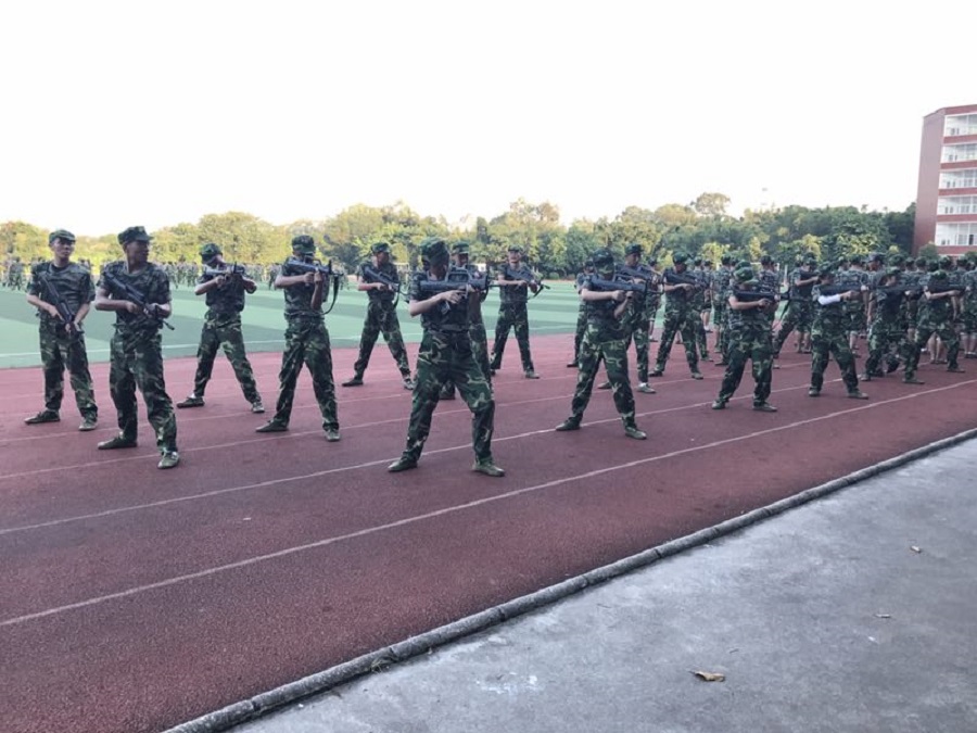 少年强,则国强。在校园的某一处,有一个特殊"部队"——狼牙队。在军训中,为了让新生们能够切实感受到中国军人保护国家的使命感,特此模拟解救"人质"的情境。在这个特殊方阵的训练过程中,每个人都代入好自己在模拟情境中的角色,不管在地上翻滚多少次,也不管在烈日下训练有多么辛苦,即使在训练过程中有受伤的情况发生,但他们仍旧坚持着,不放弃的精神正是我们当代老员工应有的精神。