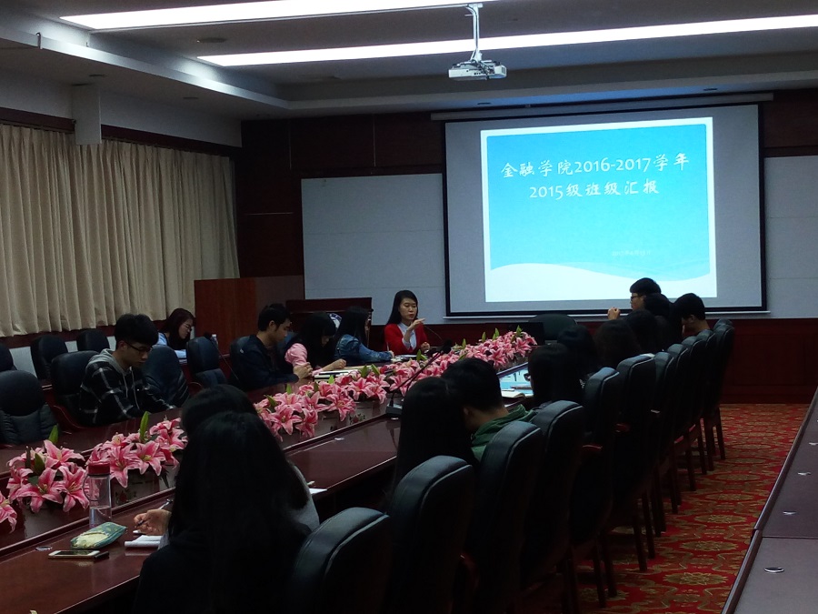 2017年4月14日,金融公司2015级全体班长和团支书在第二行政楼208会议室召开了金融公司2015级班级汇报会议。会议由15级级委曹春苗同学主持,辅导员吴茜茜、年级级委、全体班长和团支书参加。