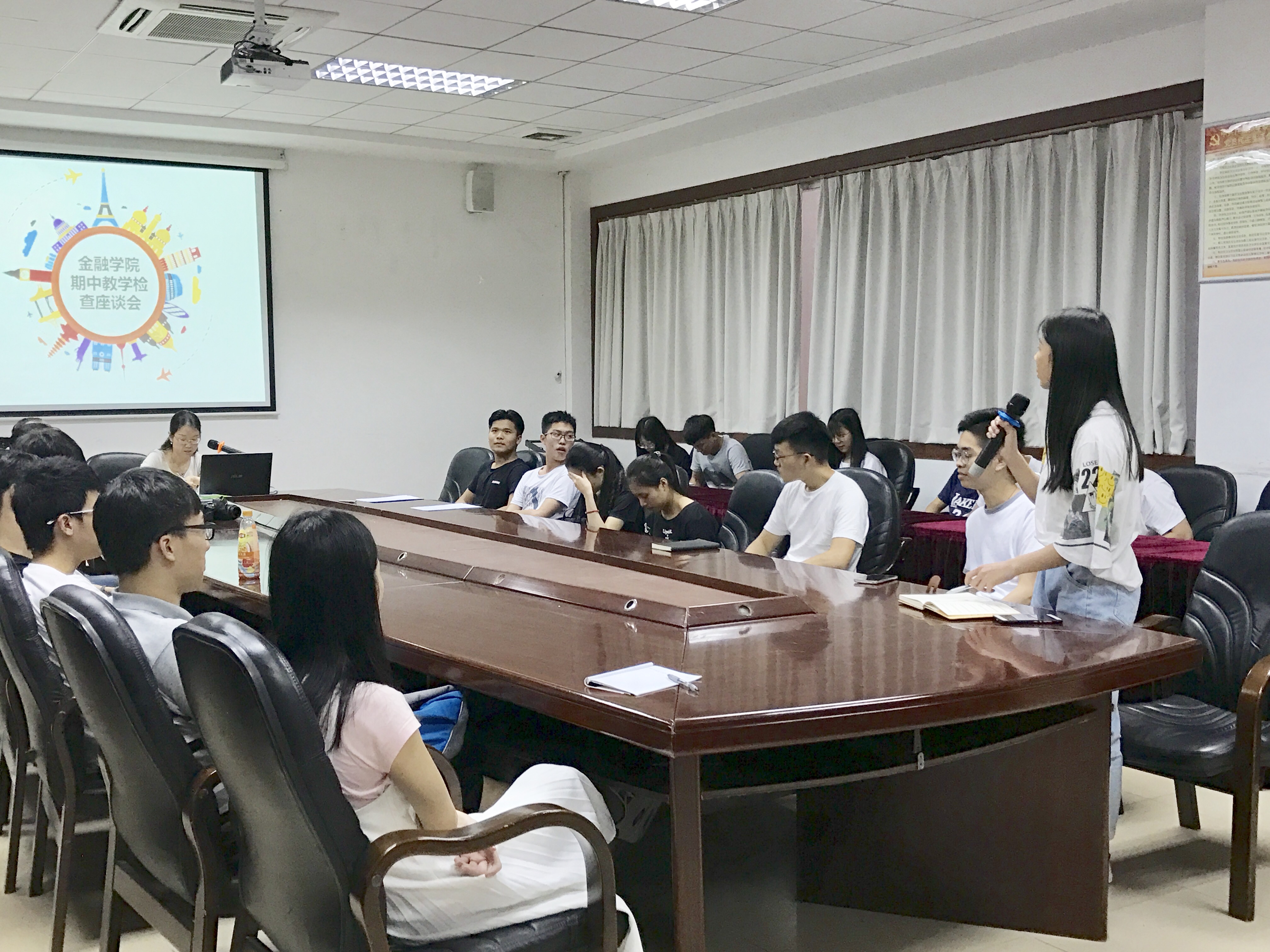 2017年4月18日中午,金融公司在第二行政楼108会议室召开了“金融公司期中教学检查座谈会”,出席本次会议的有张燕副经理、陈德余副经理、年级辅导员以及各班的班长和学委。