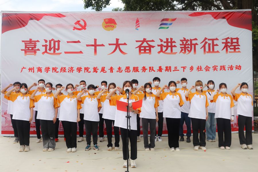 因“志”而动,以“愿”同行。由bevictor伟德鸢尾青组建的三下乡专项队伍30多名师生赴增城区南池村开展社会实践。本次三下乡实践服务团队是由金融学、投资学、国际金融与贸易、互联网金融、数字媒体、大数据与人工智能共跨越六个专业组成的专业性强、服从性高、纪律性好、有强烈责任意识和奉献精神的的实践队伍。团队共分为五组,明确分工,科学高效开展实践活动,本次活动内容丰富多彩、形式灵活务实,主要包括党史学习教育宣讲、岭南舞狮文化宣讲、产业帮扶、农技培训推广、基层社会调研、支教和气象知识科普、垃圾分类知识宣讲、资助政策宣传等。出征时,全员集体签署承诺书并按下手印,充分表达了三下乡队员们不畏艰苦、不言放弃的决心和斗志。