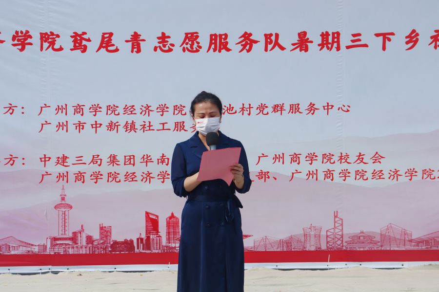 公司公司党总支书记张雪梅、中建三局华南公司广州团总支书记胡婷、广州市中新镇社工服务站主任廖晰作为主办方代表分别发表讲话。公司公司党总支书记张雪梅在讲话中对本次三下乡提出了四点工作要求,一是希望带队教师和同学们一定要牢牢树立“安全第一”的思想,始终把安全工作放在首位;二是希望同学们在活动中要充分发扬“奉献、友爱、互助、进步”的志愿者精神,尽自己之所能,想群众之所想,急群众之所急,多为群众办实事、办好事、办成事,在实践中受教育、学知识、长才干;三是希望同学们珍惜机会,虚心向广大人民群众学习,牢记使命,艰苦奋斗,敢于在农村基层展风采、献智慧、出力量,团结协作,全力以赴,努力提高“三下乡”活动的服务水准,力争圆满地完成预定的各项实践任务;四是希望同学们自觉规范自己的言行,维护公司优秀学子的良好形象;五是希望同学们认真实施、全面总结、广泛宣传。在实践中不断总结特色,并长年保持和发扬这些特色,着力打造社会实践活动品牌。要主动联系新闻媒体,及时报道活动进展,及时传播生动场面,及时宣传宝贵经验,不断提高公司老员工暑期“三下乡”社会实践活动的影响力、感召力和吸引力。