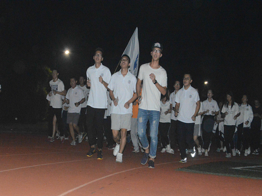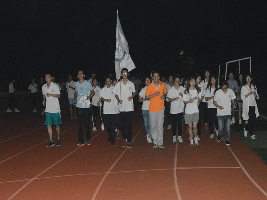 18:30一到,在陈敬宗老师的带领下同学们以整齐的队伍迈入操场。迎面向我们跑来的正是活力四射的金融学子,缓慢的开始,身体逐渐发热,汗水渗出。他们保持匀速,呼吸着操场的空气。一圈紧接着一圈,或许他们初感疲惫,或许他们已经体力不支,但他们都不轻言放弃,继续前进,坚持到底。