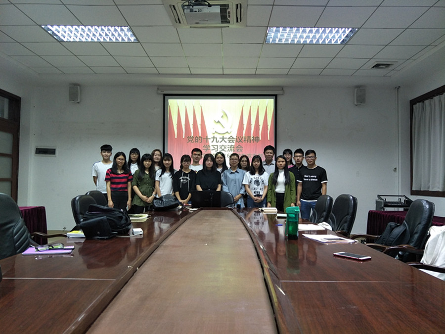 跟紧时代砥砺前行,担当责任奋发有为,这是当代青年的使命担当。为深入了解十九大精神,将“不忘初心,牢记使命”落实于实际,金融公司党总支于2017年10月25日在第一行政楼108办公室开展以“学习讨论十九大精神”为主题的学习活动,出席本期学习讨论会的有16级党支部书记叶剑敏以及16级入党积极分子。