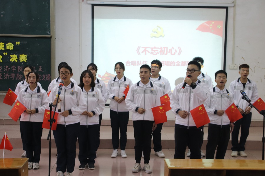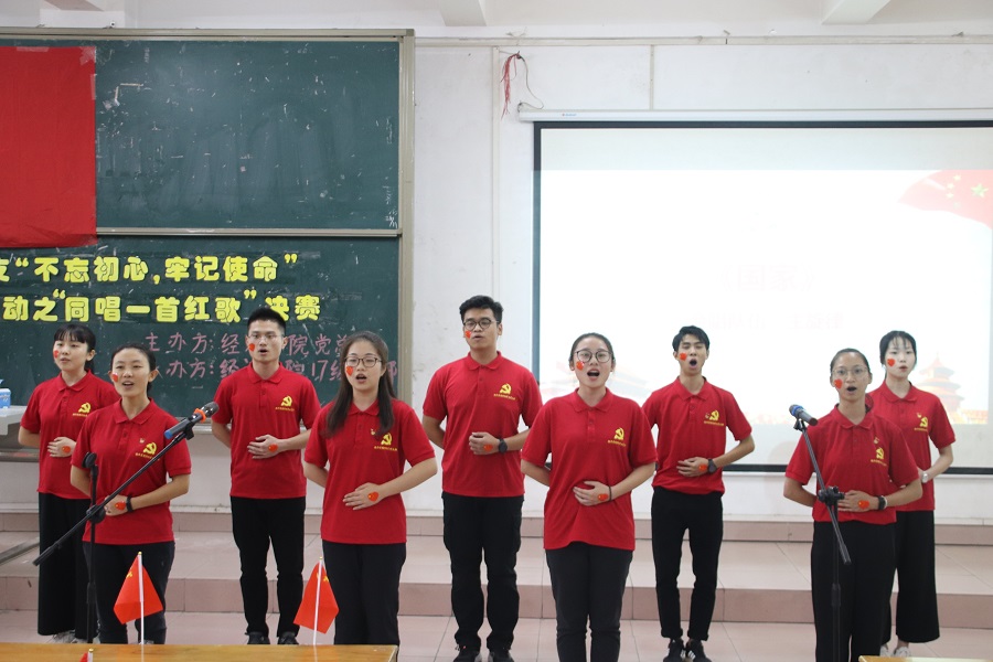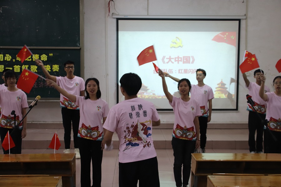 张雪梅书记在致辞中号召全体员工树立远大理想,不忘初心,牢记使命,保持爱国热忱,努力实现中国梦。本次比赛通过员工团支部与党支部红歌合唱比赛的形式,以音色与音准、演唱效果、特色编排、舞台表现、综合表现等五大项目为评分标准,参加此次比赛的有团支部6个,党支部3个。9支队伍各展其能、各显其风采特色,用歌声唱响老员工的爱国情怀。《不忘初心》、《国家》、《我和我的祖国》、《歌唱祖国》、《大中国》、《我的中国心》等一首首耳熟能详、激动人心的歌曲在一教111教室回响,催人奋进,震撼人心。比赛以全体师生献唱《不忘初心》结束,全体师生用铿锵有力的歌声,向祖国致以最真诚的祝福,展现了最真切的爱国情怀。