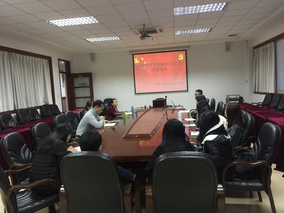 为了让金融公司的教工党员和员工党员们深切体会我国改革开放四十年来取得的伟大成就以及更深入了解为我国发展做出巨大贡献的建设者们,金融公司党总支于2018年12月18日上午10:00组织党员在第二行政楼108会议室收看《庆祝改革开放40周年大会》的现场直播。出席收看直播会的有金融公司党总支张雪梅书记、金融公司张燕副经理、金融公司教工党员以及员工党员、预备党员及入党积极分子,会议由16级员工党支部书记朱文艳老师主持。