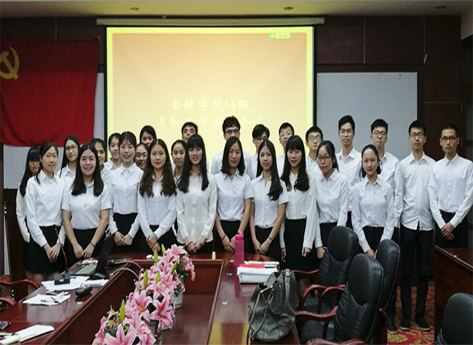 2017年6月6日,在党支部书记范英琦老师的带领下,金融公司14级员工党支部举办了有关14级员工党支部考勤工作安排会议,会议于第一行政楼D208召开。由正式党员温迪媚同志主持,党支部书记范英琦,正式党员徐晨曦,谢润萍,冯楚婷同志和各预备党员和其他阶段的发展对象参与此次大会,对接下来要开展的考勤工作进行安排。