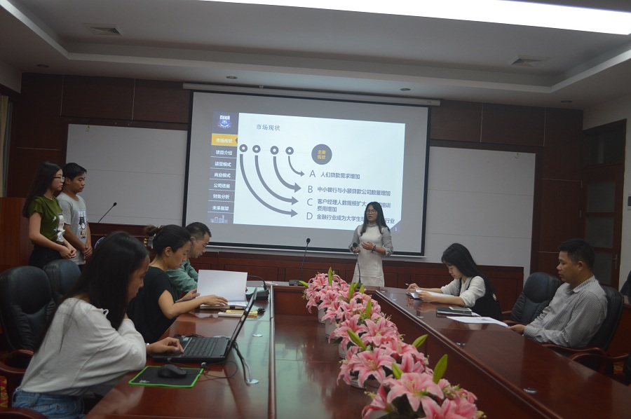 在比赛中,各参赛队伍通过PPT展示和自己的激情演讲展现了各团队的特色,从PPT中可以看出,每个团队都付出了很大的心血。而且他们的项目都非常有新意,有小额贷款、高校服务平台等各种项目。参赛团队通过团队介绍、项目可行性分析和未来展望等方面来介绍自己的团队,使评委更加了解他们的团队和项目。在比赛过程中,各团队井然有序地进场并在比赛中竭尽所能,体现了金融公司的良好风尚,得到了评委老师的一致好评。