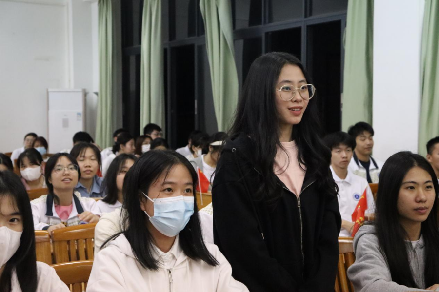 张雪梅向同学们阐述国家发展的重要时间节点,以一条时间线向大家描述国家从站起来到富起来再到强起来的伟大历程。她着重介绍了三个历史决议和三次重要大会,以“走好新时代长征路”和坚持“三个务必”为基准,引导同学们从党的百年奋斗历程中汲取继续前进的智慧与力量,激励员工们响应时代号召,勇担时代使命,珍惜老员工活,把握大学时光,脚踏实地、行稳致远,努力奋斗、成就理想。