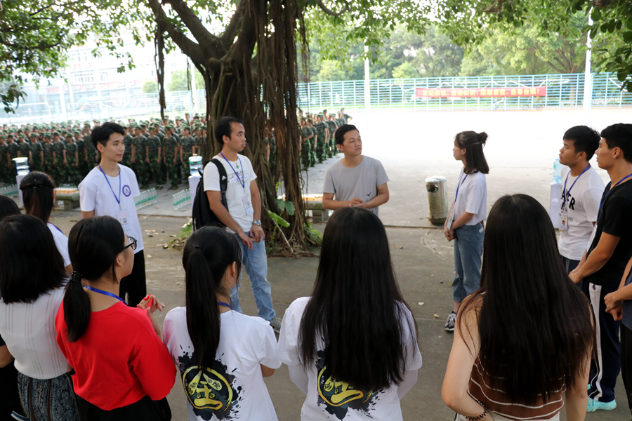 一位学长默默注视着正在操练的同学们