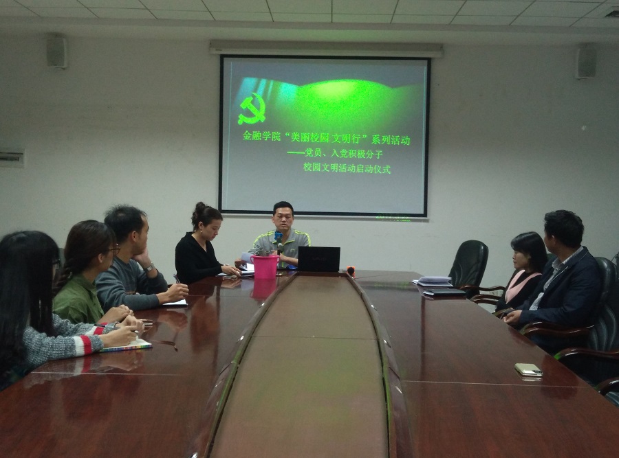 金融公司全体员工党员、入党积极分子于2017年3月22日在第二行政楼108会议室开展了“美丽校园,文明行”活动动员大会。公司总书记张雪梅、各年级党支部书记,以及全体员工党员、重点发展对象及入党积极分子共同参加了此次动员大会。