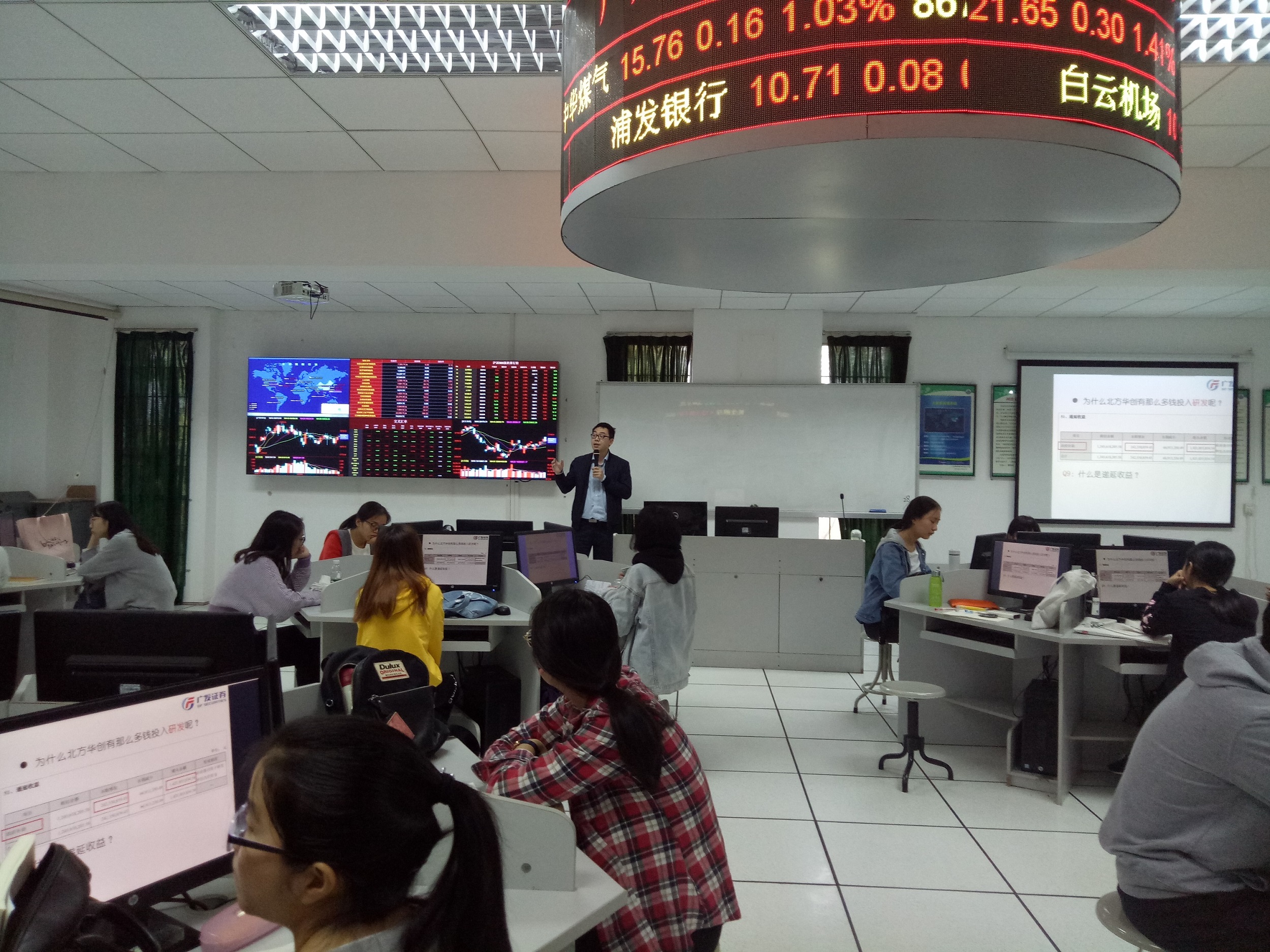 为了进一步提升金融公司员工证券投资分析能力,更好地将书本知识和实际经济活动联系起来,金融公司邀请到校企合作单位之一——广发证券广州花城大道营业部的首席投资顾问邵嘉铭经理给公司员工授课,邵经理分别在11月16日、11月23日以及11月30日连续三个周五的下午给员工上课,共12个课时,受益员工为16级金融学六个班三百多个员工。